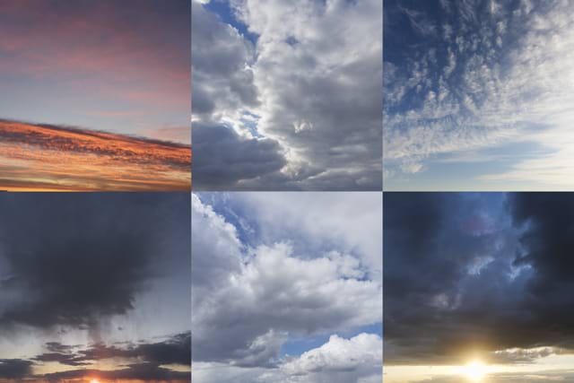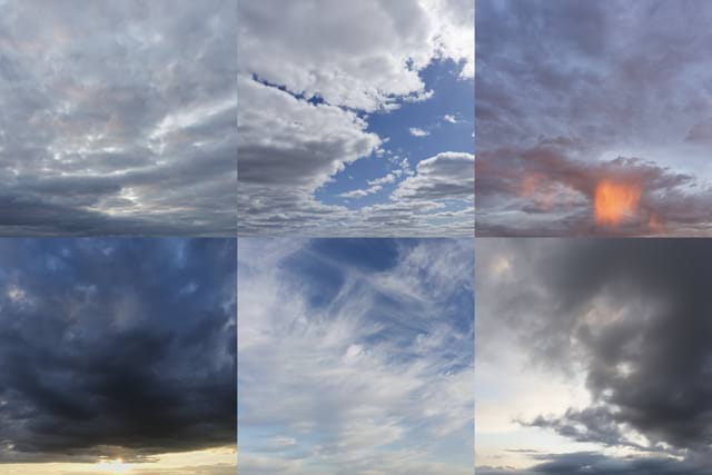 - Each cloudscape object comes with its own unique material, which lets you quickly adjust typical settings such as cloud position, scale, density and more.